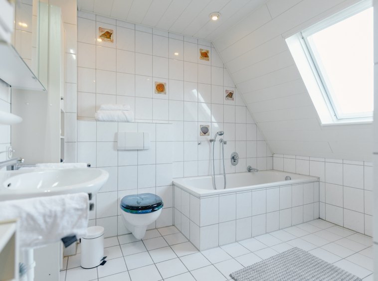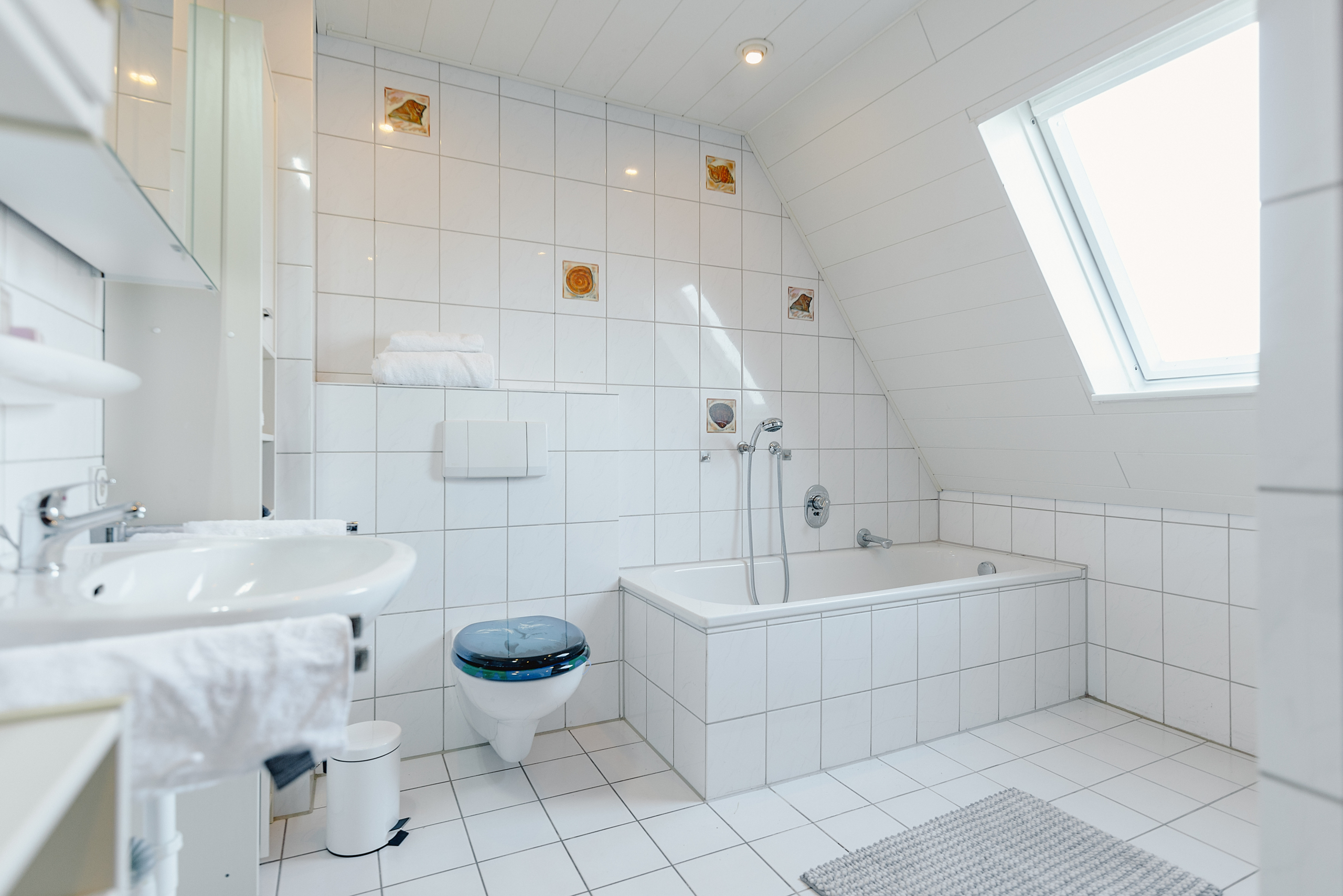 Terrassenzugang macht diesen Abschnitt des Hauses zu etwas besonderem. Im oberen Stockwerk befindet sich ein gepflegtes Vollbad, mit Wanne und Dusche und Platz für eine Waschmaschine. Zwei große und