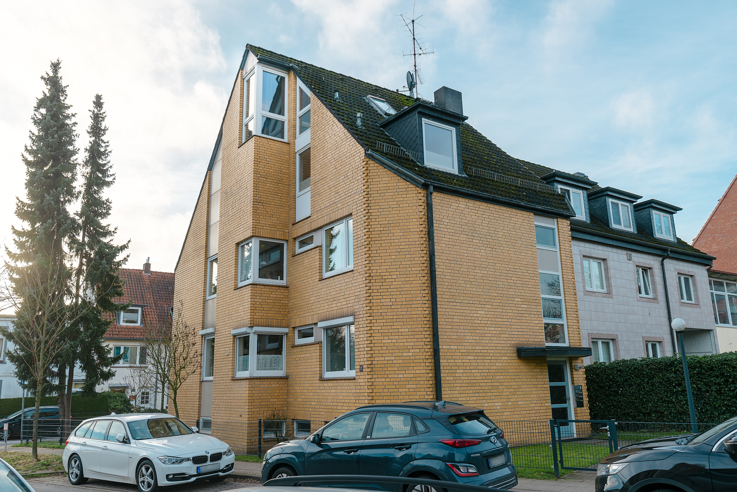 Dieses Wohnhaus wurde über die Jahre stets gepflegt und gehegt. Dies erkennen Sie bereits wenn Sie auf das Grundstück des Hauses treten, denn sowohl der Zaun, als auch die Fenster des Hauses und der Garagenanstrich sind neu. Über den gepflasterten Weg zwischen den gepflegten Rasenflächen, erreichen Sie die Haustür, durch die Sie in das erneuerte Treppenhaus gelangen. Von hier aus machen Sie sich auf den Weg, zwei Stockwerke nach oben in Ihre Wohnung oder ein paar Treppenstufen nach unten in den Keller. Dort erreichen Sie Ihren großzügigen Kellerbereich oder zur anderen Seite die Waschküche mit Ihrem persönlichen Waschmaschinenanschluss.