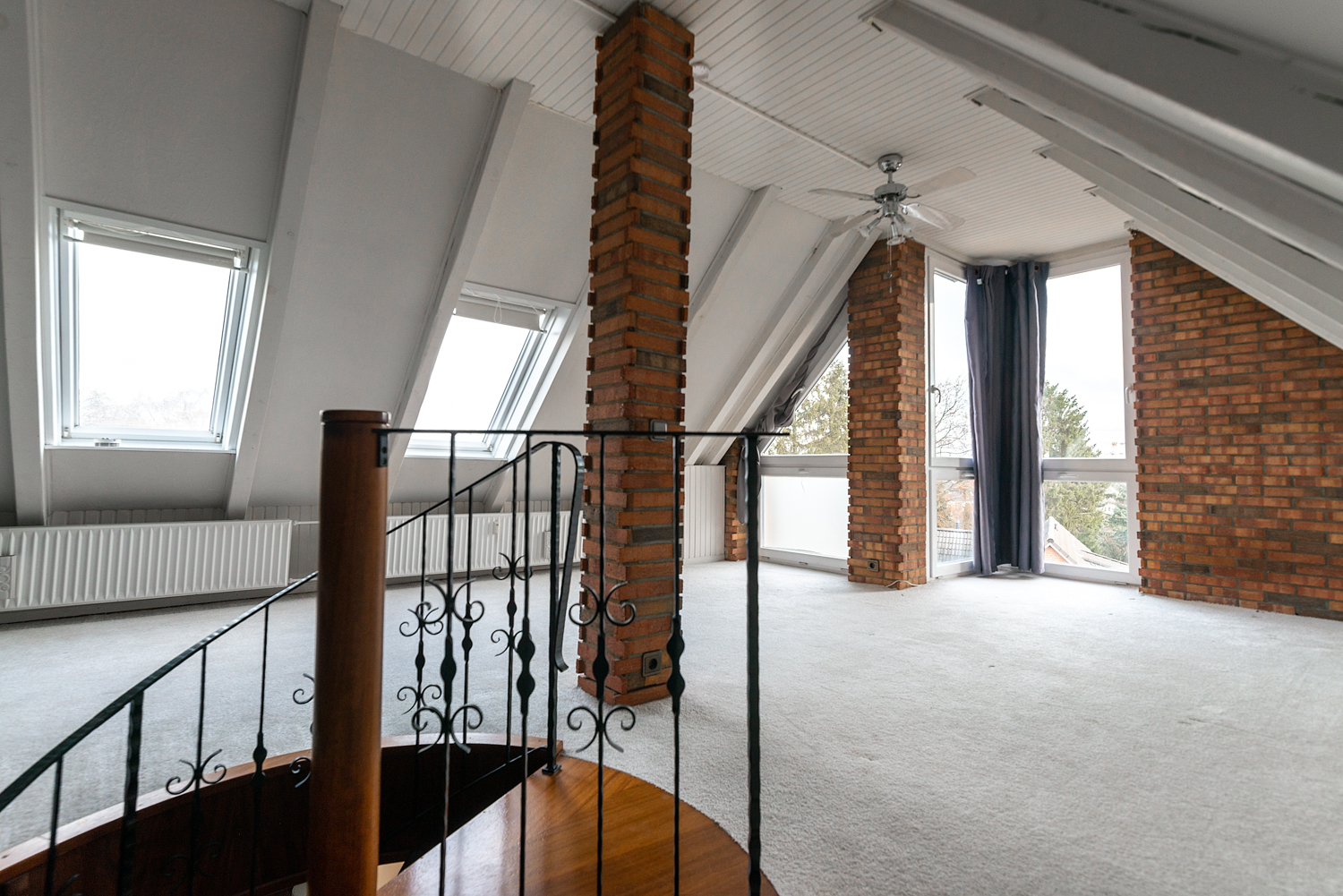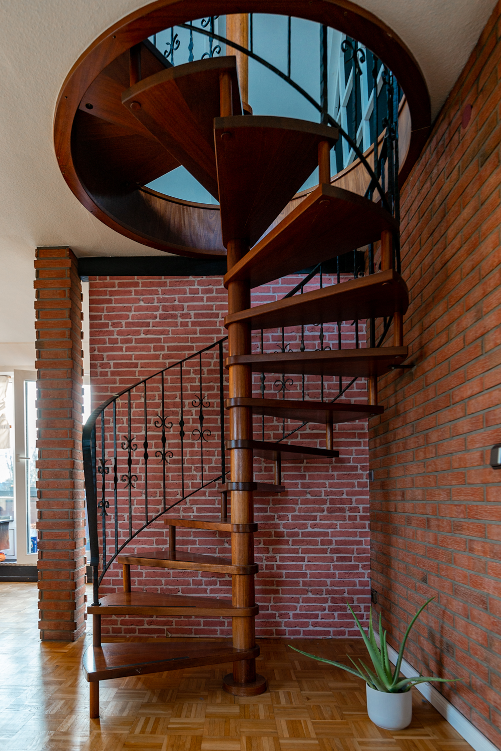 Über eine einmalige Wendeltreppe erreichen Sie das Obergeschoss, in dem Sie Ihre kreative Ader vollkommen ausschöpfen können. Denn hier ist nicht nur der Platz gegeben. Sie haben eine interessante Raumaufteilung mit großen, bodentiefen Fenstern sowie Dachfenstern, die diesem Raum viel Licht bieten. Auch ein beleuchteter Einbauschrank bietet Ihnen ein weiteres kleines Highlight. Rundum eine sehr besondere Wohnung, die auf neue, liebevolle Eigentümer wartet.