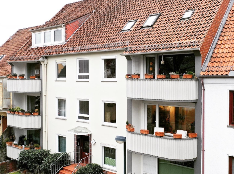 Die Zimmer sind großzügig geschnitten und bieten gestalterischen Freiraum. Die Außenfassade ist gepflegt und die Balkone bieten ausreichend Platz für Ihre Gartenmöbel. Der Austritt zum Balkon mit Süd-West Ausrichtung befindet sich im Wohn-/Essbereich. Zum zweiten Balkon treten Sie einfach aus der Küche oder dem Schlafzimmer aus. Ein geräumiger Kellerraum sowie ein Dachboden gehören mit zur Wohnung und eignen sich wunderbar als Abstellfläche oder einen Hobbyraum. Bremen ums Eck. Die Bremer Innenstadt ist innerhalb kürzester Zeit mit der Bahn oder dem Auto zu erreichen. Hier haben Sie die Möglichkeit, ausgiebig zu shoppen und zu essen, ins Kino zu gehen oder weitere Freizeitaktivitäten zu genießen. Einladende Gegend. Hier ist es ruhig und schön. Viele Parkmöglichkeiten stehen Ihnen hier ebenfalls zur Verfügung. Wohnung
