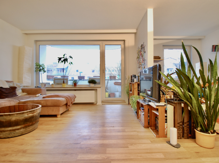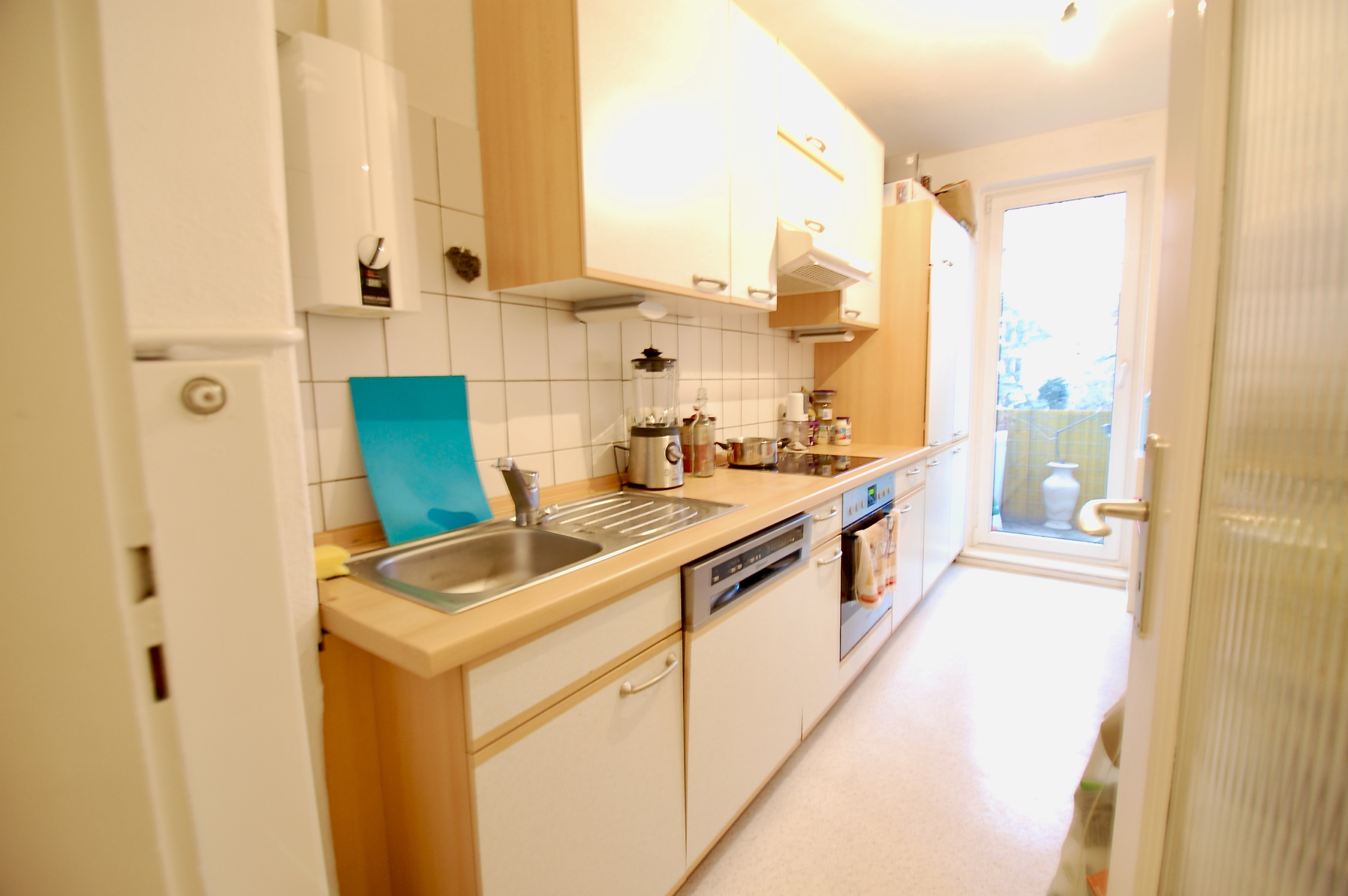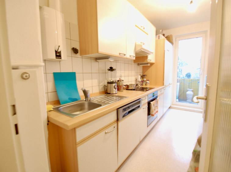 Unser Gang durch die Wohnung: 2 Zimmer, 2 Balkone, hell und offen, Einbauküche mit elektrischen Geräten, Duschbad mit einem Anschluss für die Waschmaschine, gute Raumgrößen, Dachboden und Kellerraum. Das Schlafzimmer ist groß genug für ein Kingsize Bett, Kommode und Sessel. Die geräumigen Zimmer sind mit Laminat ausgelegt und schön hell. Homeoffice ist hier auch kein Problem! Sie haben nette Nachbarn und einen Gemeinschaftsgarten zur Mitbenutzung. Die Küche lädt zum Kochen und gemeinsamen Candle-Light-Dinner ein. Angeschlossen an den offenen Flur und den Balkon ist die Küche ideal für Kochfreudige! Die Gerüche bleiben fern, dennoch ist man hier mitten im Geschehen! Lage