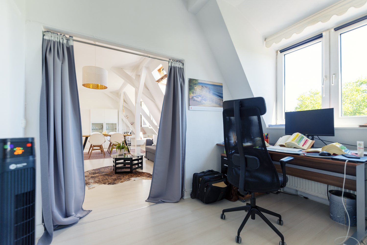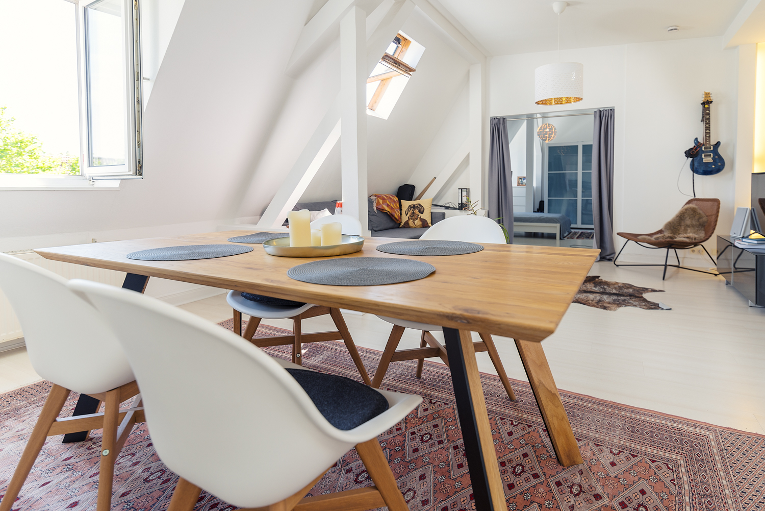 Dieses Loft-Apartment mit romantischen Holzbalken in Eimsbüttel befindet sich allein auf der 5. Etage.