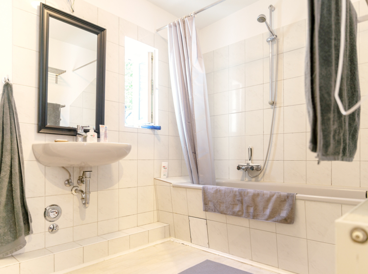 Das Schlafzimmer grenzt an den Wohnbereich und sticht durch die Helligkeit und den offenen Schnitt hervor. Der Einbau einer Tür zur Abgrenzung dieser beiden Bereiche wäre möglich. Doch sowohl der aktuelle Mieter als auch die vorherige Mieterin empfanden den offenen und einladenden Grundriss schöner. Wir sehen dies ebenfalls so, denn viel Licht und ein großes Raumgefühl sind so garantiert. Das Badezimmer kann selbstverständlich verschlossen werden. Mit einer Badewanne und einem Fenster, ist dieses Bad für Eimsbüttler Verhältnisse beinahe schon gigantisch. Der ein oder andere beherzte Handgriff würde dem Bad sicherlich nicht schaden, Doch auch so wie es steht und liegt, können Sie sich nach einem anstrengenden Tag eine heiße Badewanne genehmigen und entspannen.
