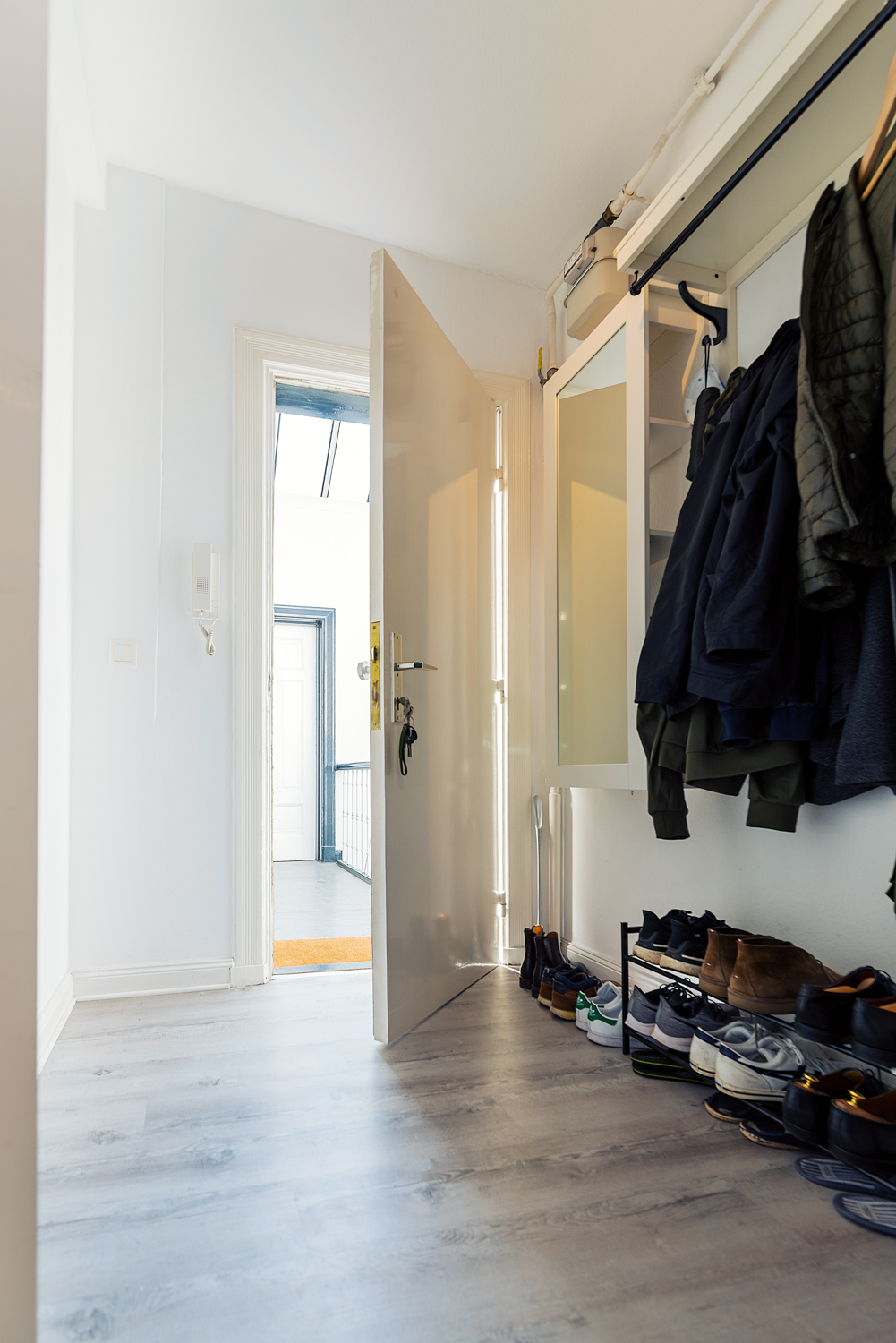 Der Flur raubt zum Glück nicht viel Wohnfläche. Er führt Sie sowohl in den Loft Bereich, als auch ins Vollbad und in den geräumigen Abstellraum. Hier haben Sie alle Hauswirtschaftlichen Geräte sowie den Anschluss für Ihre Waschmaschine. Der Mieter schätzt die Wohnung, die Ruhe in ihr und die Lage sehr. Per se möchte er noch ein wenig in der Wohnung bleiben, kann sich aber in Zukunft einen Auszug vorstellen. Sprechen Sie uns hierzu gerne an. Zahlreiche Möglichkeiten sind denkbar.