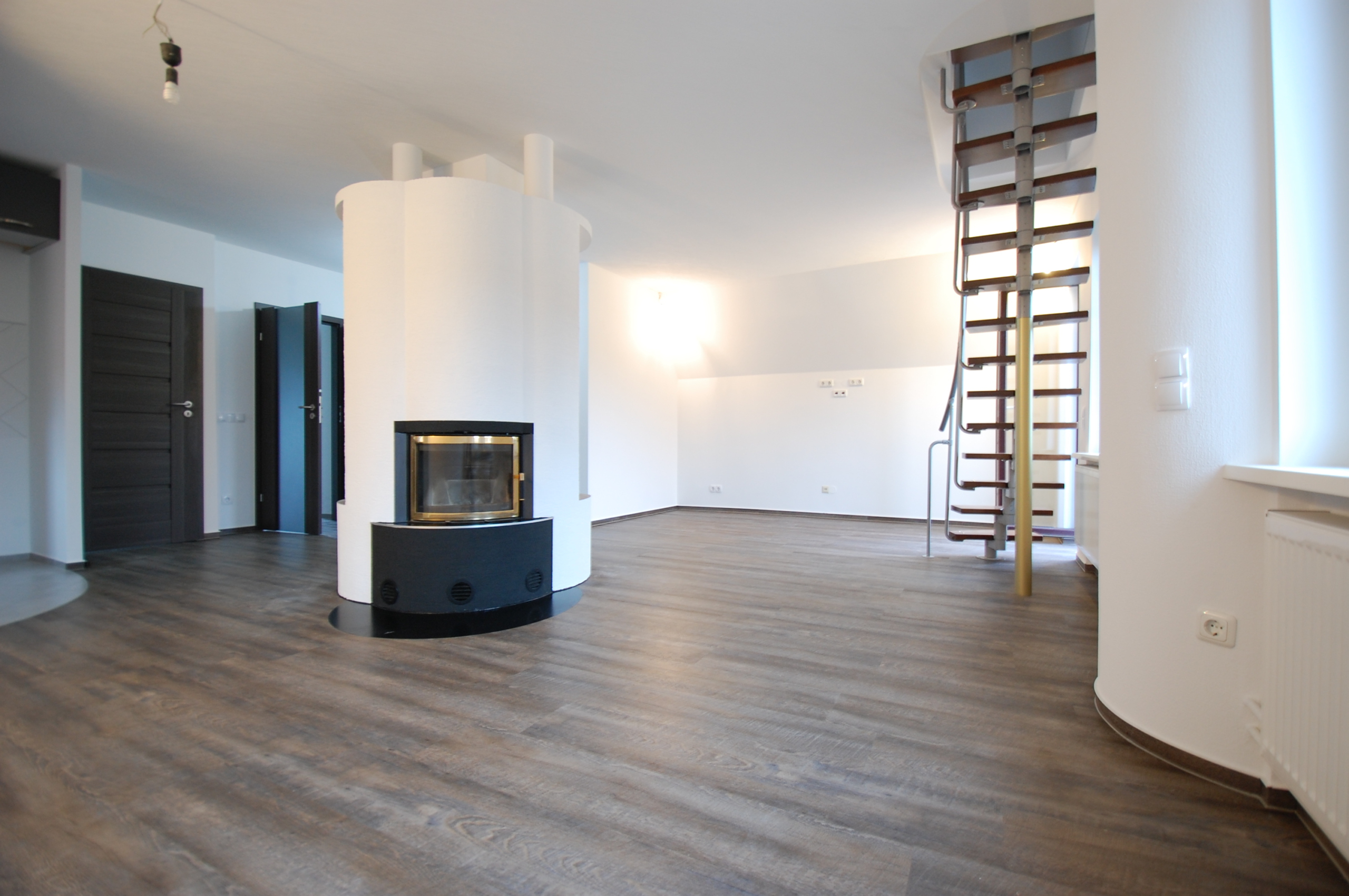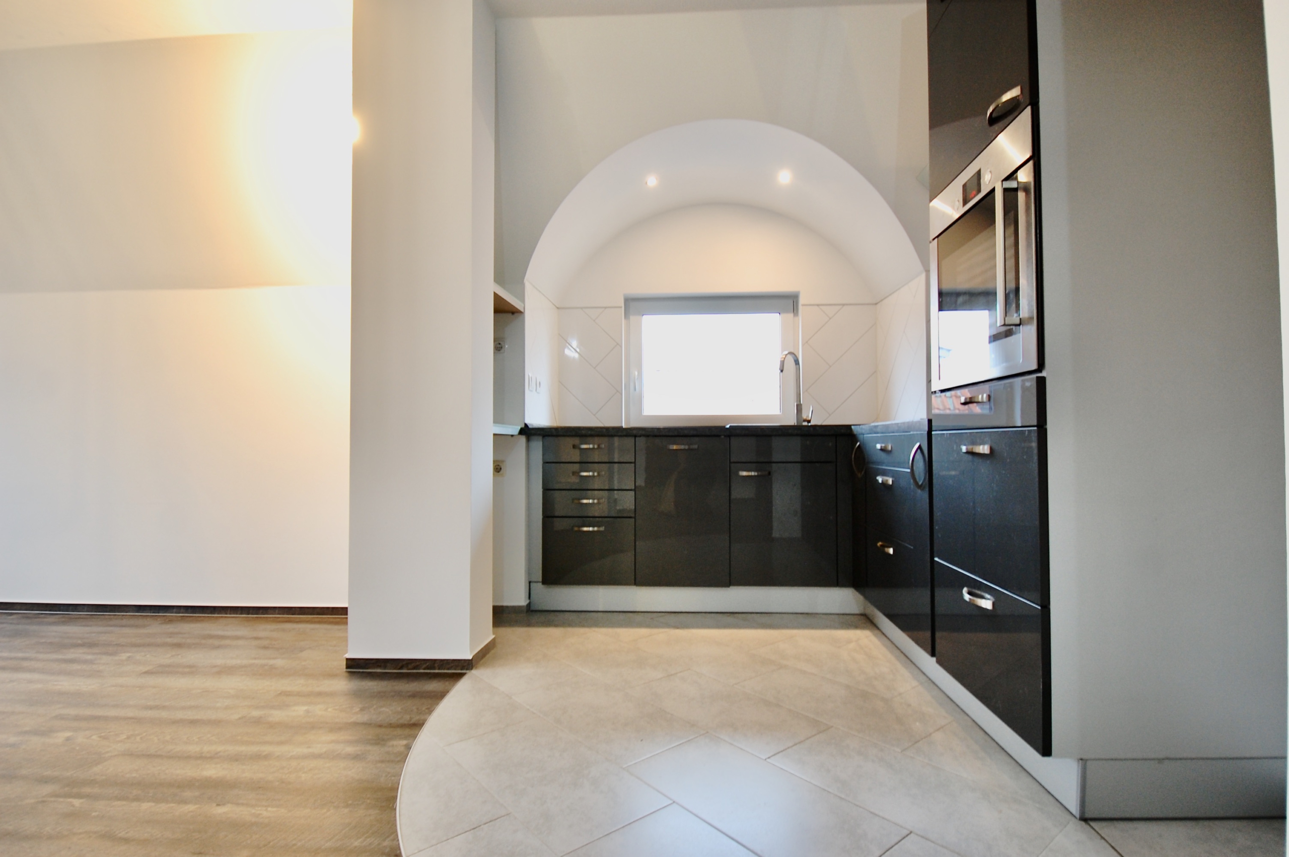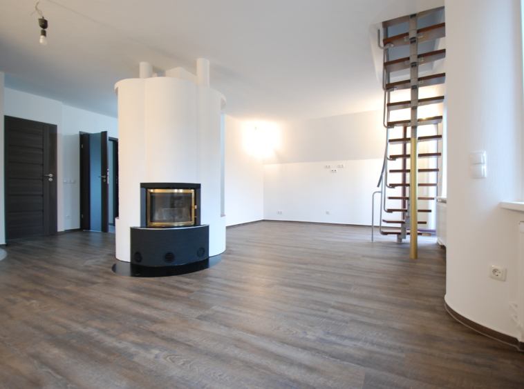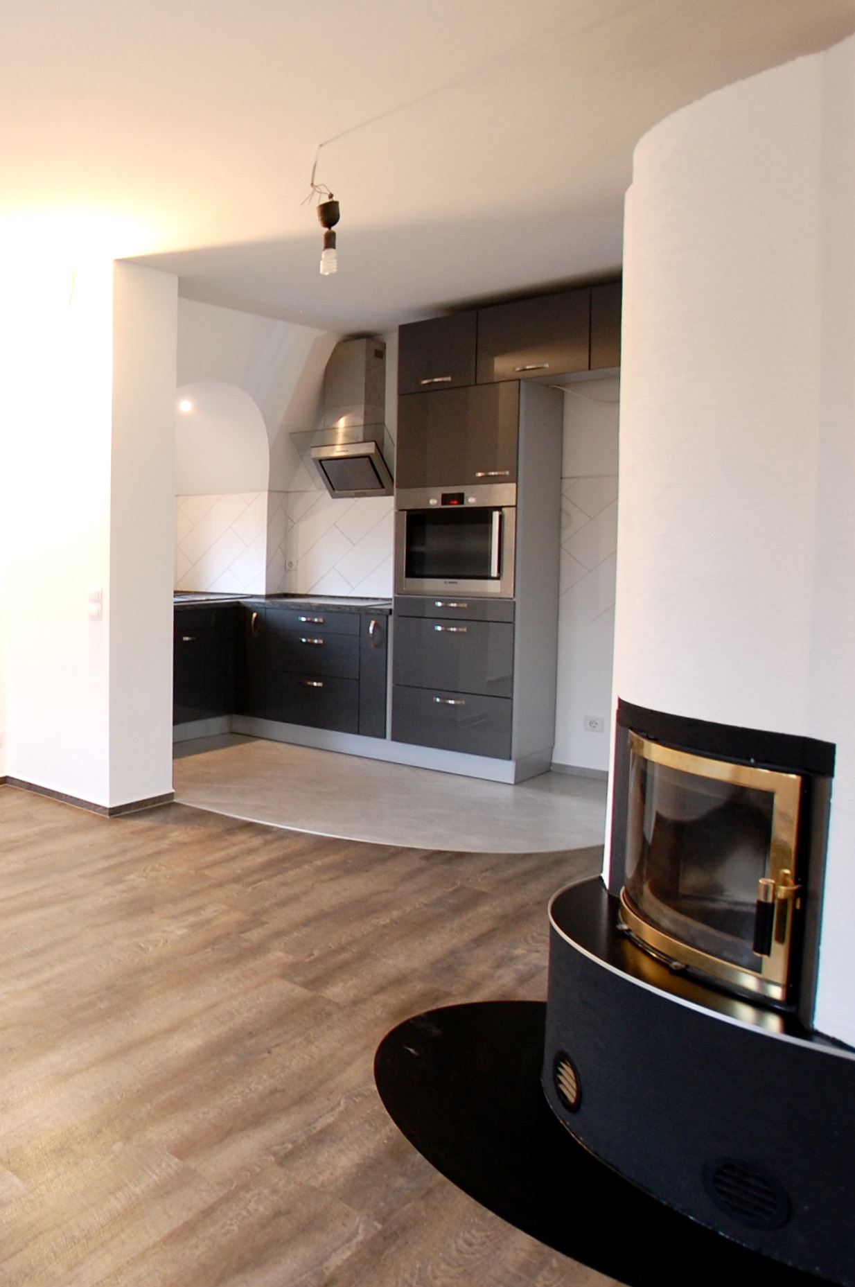Schöner Altbau, moderner Innenausbau! Diese Wohnung ist etwas besonderes! Durch den Hausflur geht es direkt in die oberste Etage. Neue Türen, neue Fenster, neue Böden und ein ganz besonderer Schnitt erwarten Sie hier. Die Architektur ist offen und einladend. Das Rondell im Wohnbereich fällt einem direkt ins Auge. Der gut positionierte Kamin wärmt Ihre Wohnung, sieht schick aus und trennt gekonnt den Wohn- und Eingangsbereich. Ein richtiger Eye-Catcher! Die moderne, anthrazitfarbende Küche und der großzügige Wohnbereich stellen das Herzstück des Apartments dar. Das Bad bleibt im Gedächtnis: neben dem besonderen Schnitt und einer geschwungenen Badewanne, bietet es Platz und hat das ein oder andere versteckte Highlight. Dachschrägen und Home-Office: Die obere Etage ist vor nicht allzu langer Zeit ausgebaut worden. Hier finden sowohl ein eigenes Home-Office als auch ein schönes Schlaf- oder Kinderzimmer Platz. Der Ausblick aus den oberen Fenstern ist grandios! Und dadurch, dass Sie über allen und allem thronen, ist es auch besonders schön ruhig. Perfekt für erholsame Stunden oder konzentrierte Arbeit. Lage