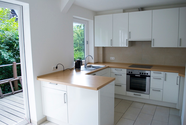 angrenzende Esszimmer, und von hier aus wieder in die Diele zurück. Die helle Küche bietet eine moderne