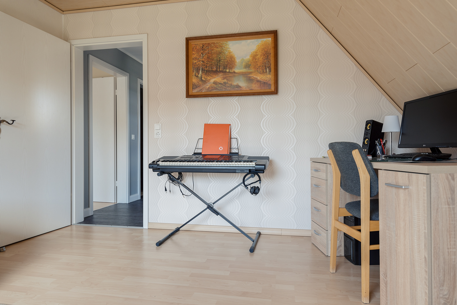Das ausgebaute Dachgeschoss bietet Ihnen einen zusätzlichen Raum. Hier können Sie ein Fitness Bereich ausbauen, Ihrem Hobby nachgehen oder all Ihre Gegenstände, die in den anderen Räumen kein Plätzchen gefunden haben verstauen. Ebenfalls auf dem Dachboden befindet sich Ihr Warmwasserspeicher.