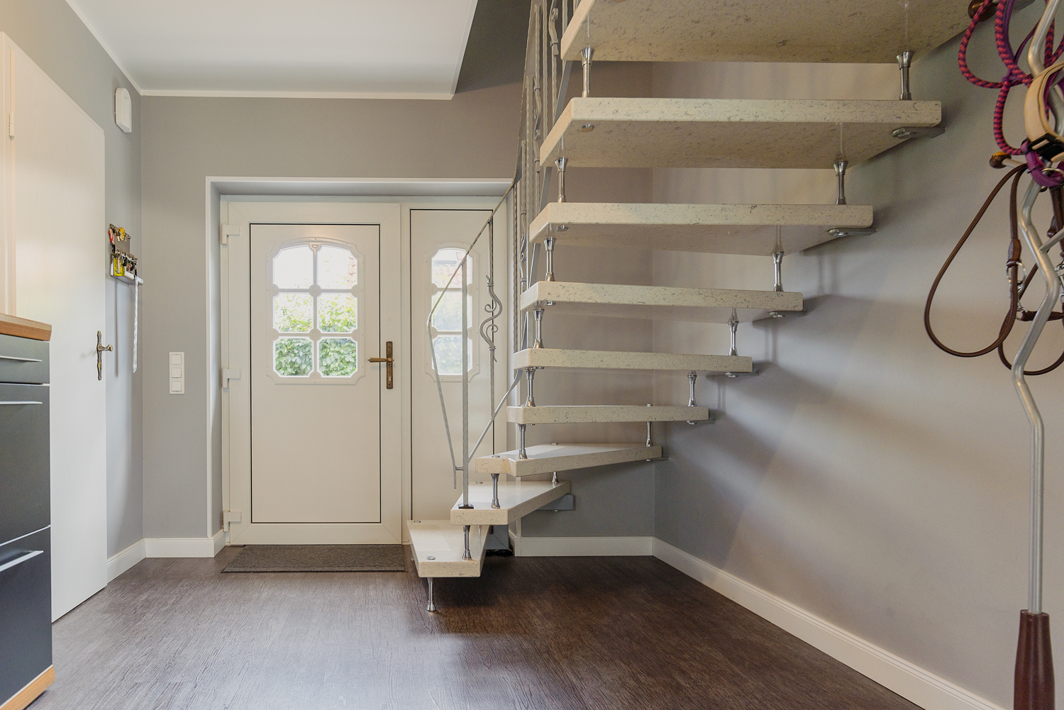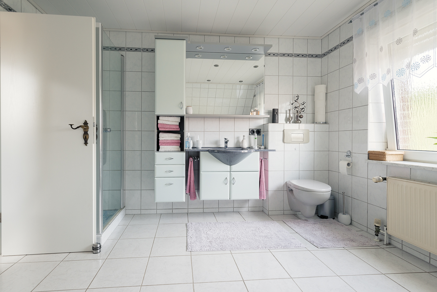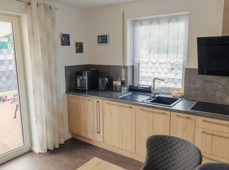 Die Bäder sind schlicht gehalten. Sollte Ihnen dies nicht zusagen, würde der ein oder andere Handgriff sicherlich noch mehr Charme in die Badezimmer bringen. Die Küche ist modern, neuwertig und stellt neben dem Wohnbereich das Herzstück des Erdgeschosses dar.