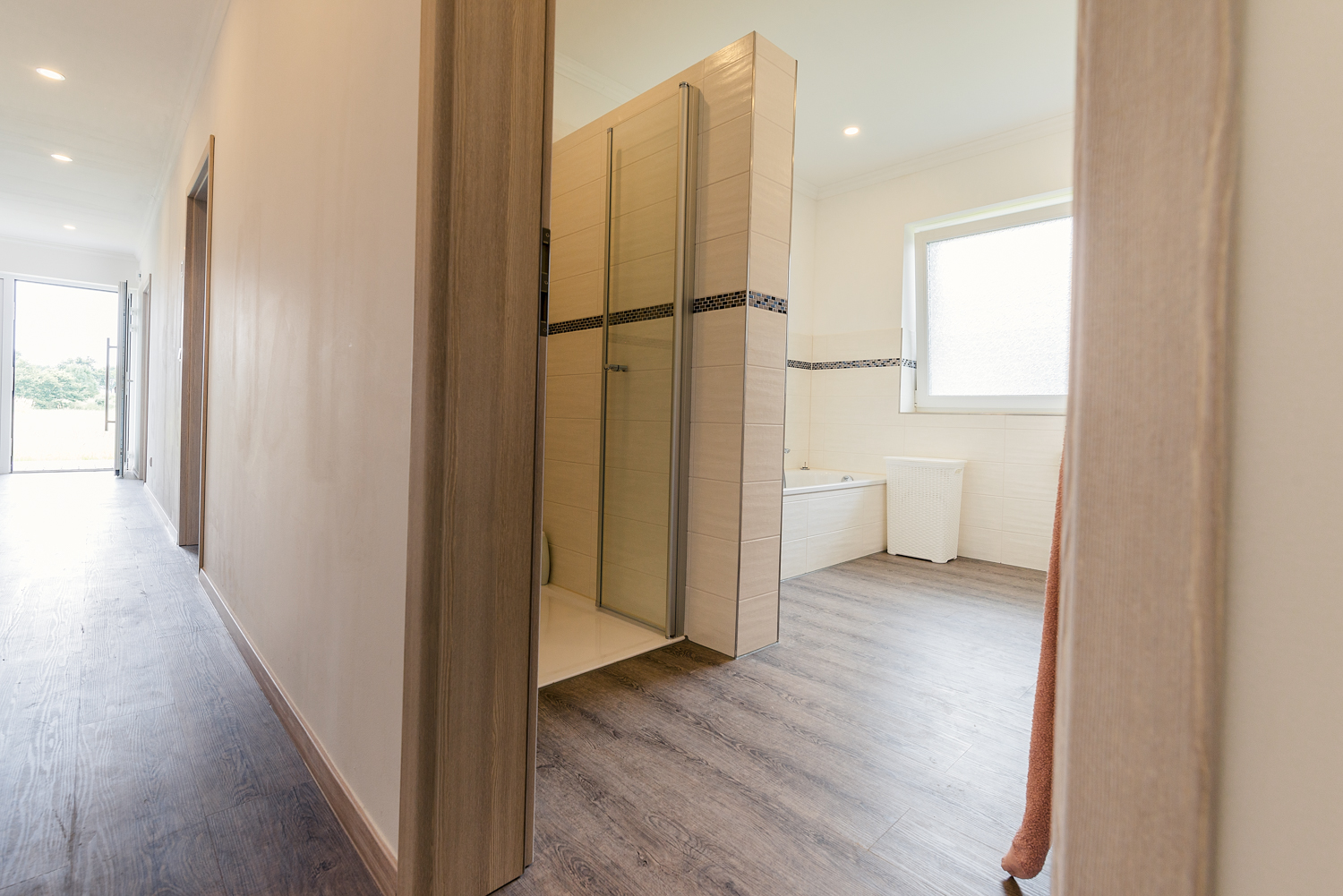 Das 2022 errichtete Haus betreten Sie durch einen lichtdurchfluteten, einladenden und geräumigen Flur.