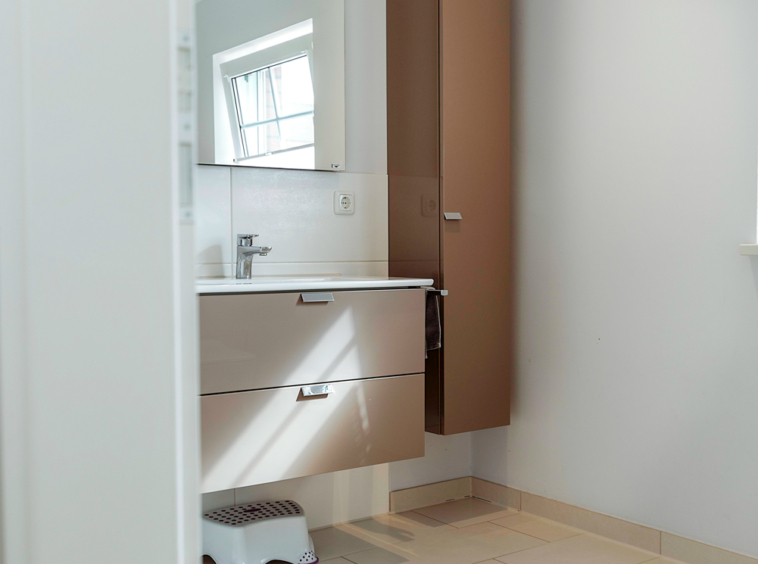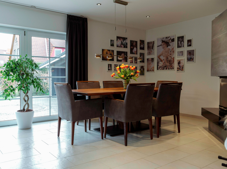 Kochen, Genießen und neue Rezepte ausprobieren! Die Gerüche bleiben fern, dennoch ist man hier mitten im Geschehen, denn durch die zentrale Lage im Haus, stellt die Küche das Herzstück des Hauses dar, ist aber nicht offen geschnitten und bietet so auch Raum für das Wohn- und Esszimmer.