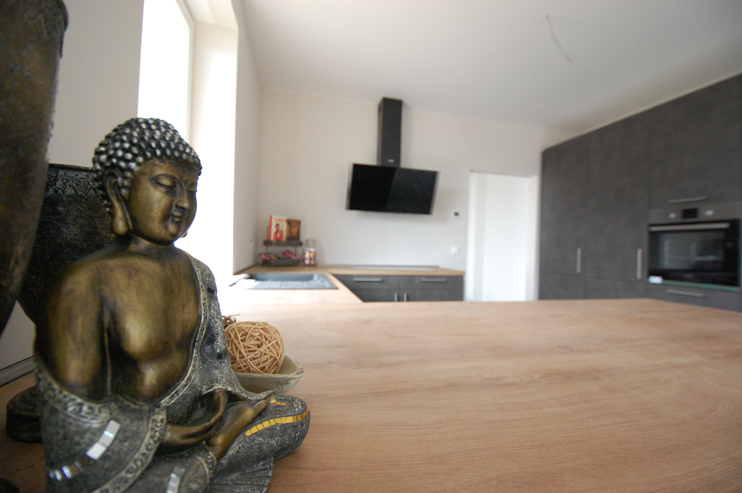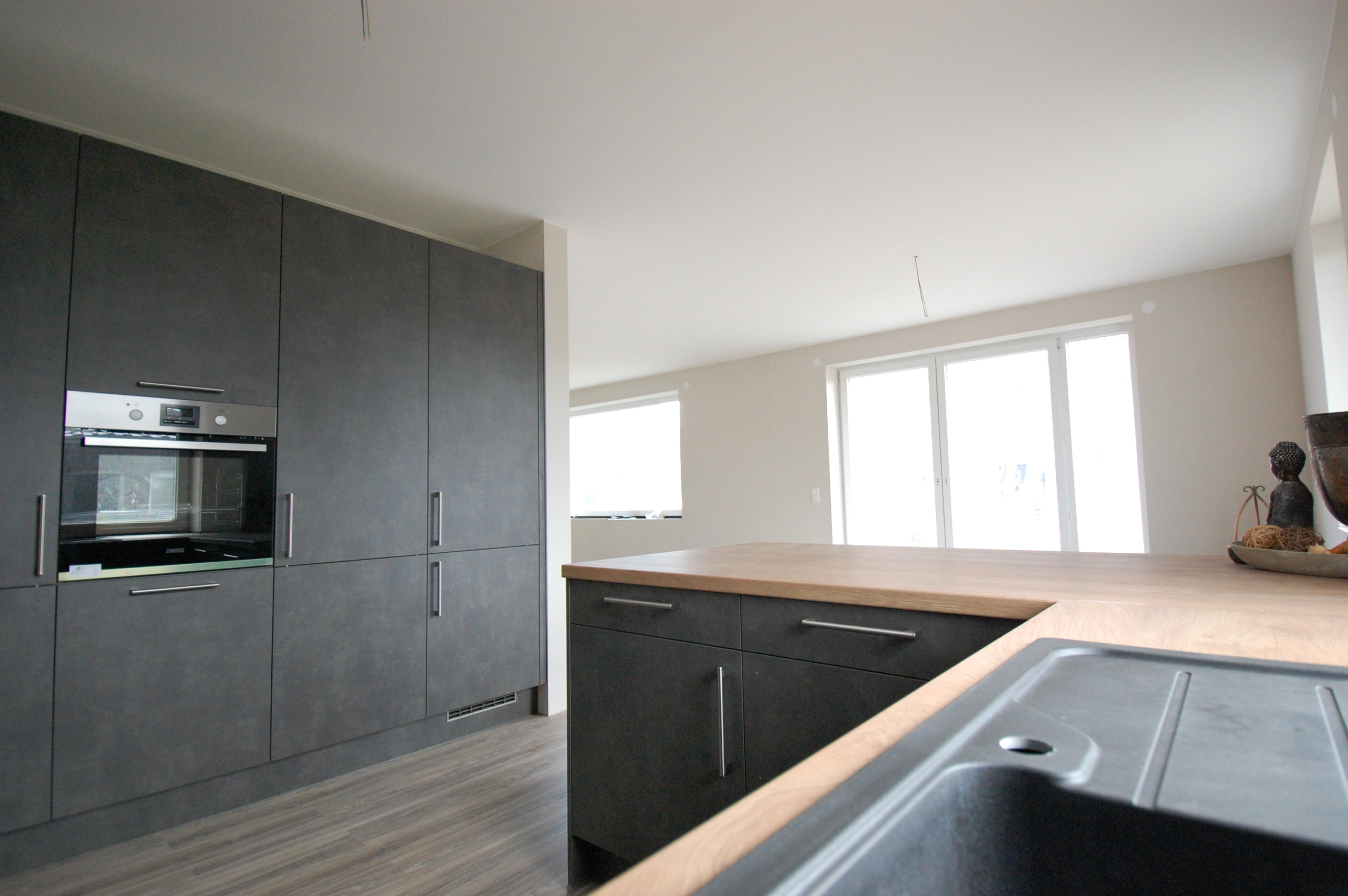 Die bodentiefen Fenster im Essbereich durchfluten den Raum mit viel Licht und bieten die Möglichkeit auf die Terrasse und in den Garten zu gucken und zu gehen. Die Küche ist mit allen elektrischen Geräten, die das Herz begehrt, ausgestattet. Zusätzlich bietet die großzügige Küche ausreichend Stauplatz für Nahrungsmittel und das Geschirr. Wem dieser Platz nicht ausreicht, der hat die Möglichkeit sich im Hauswirtschaftsraum auszutoben.
