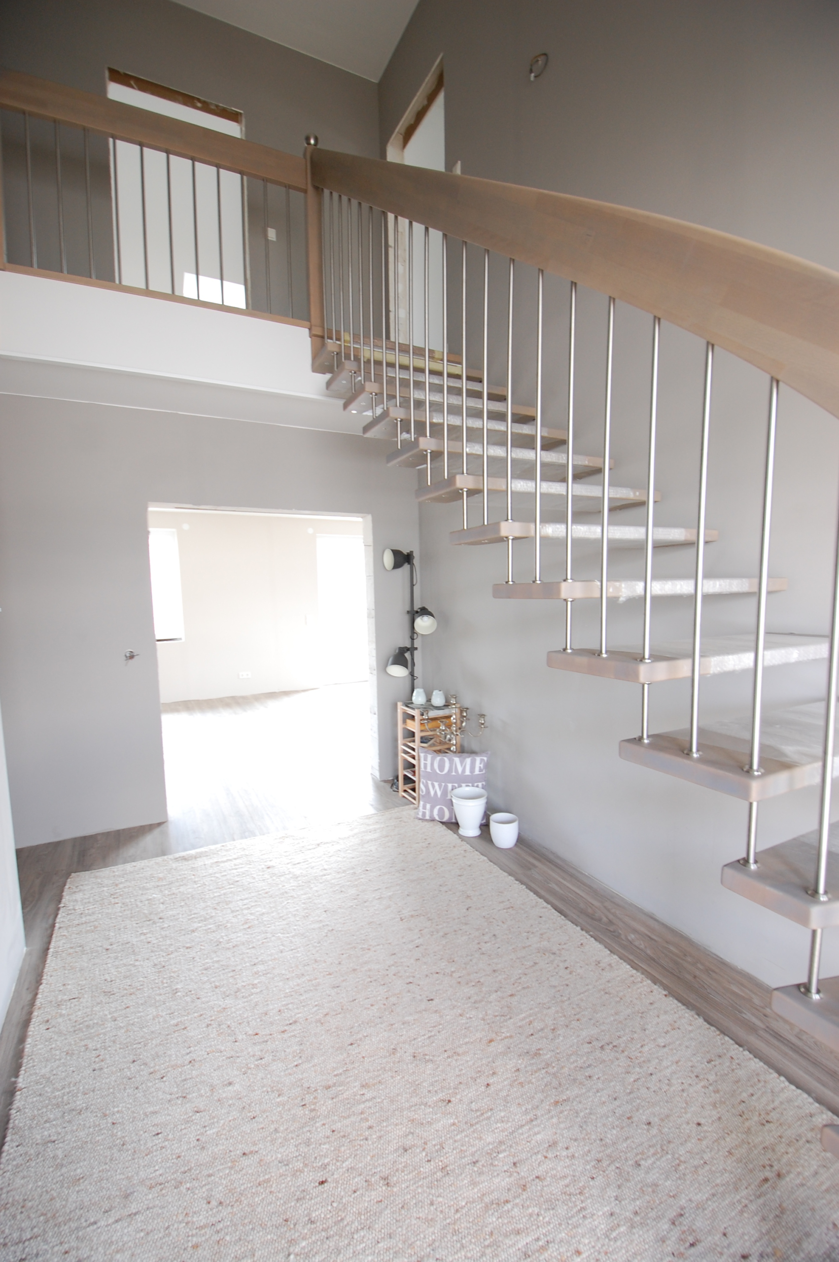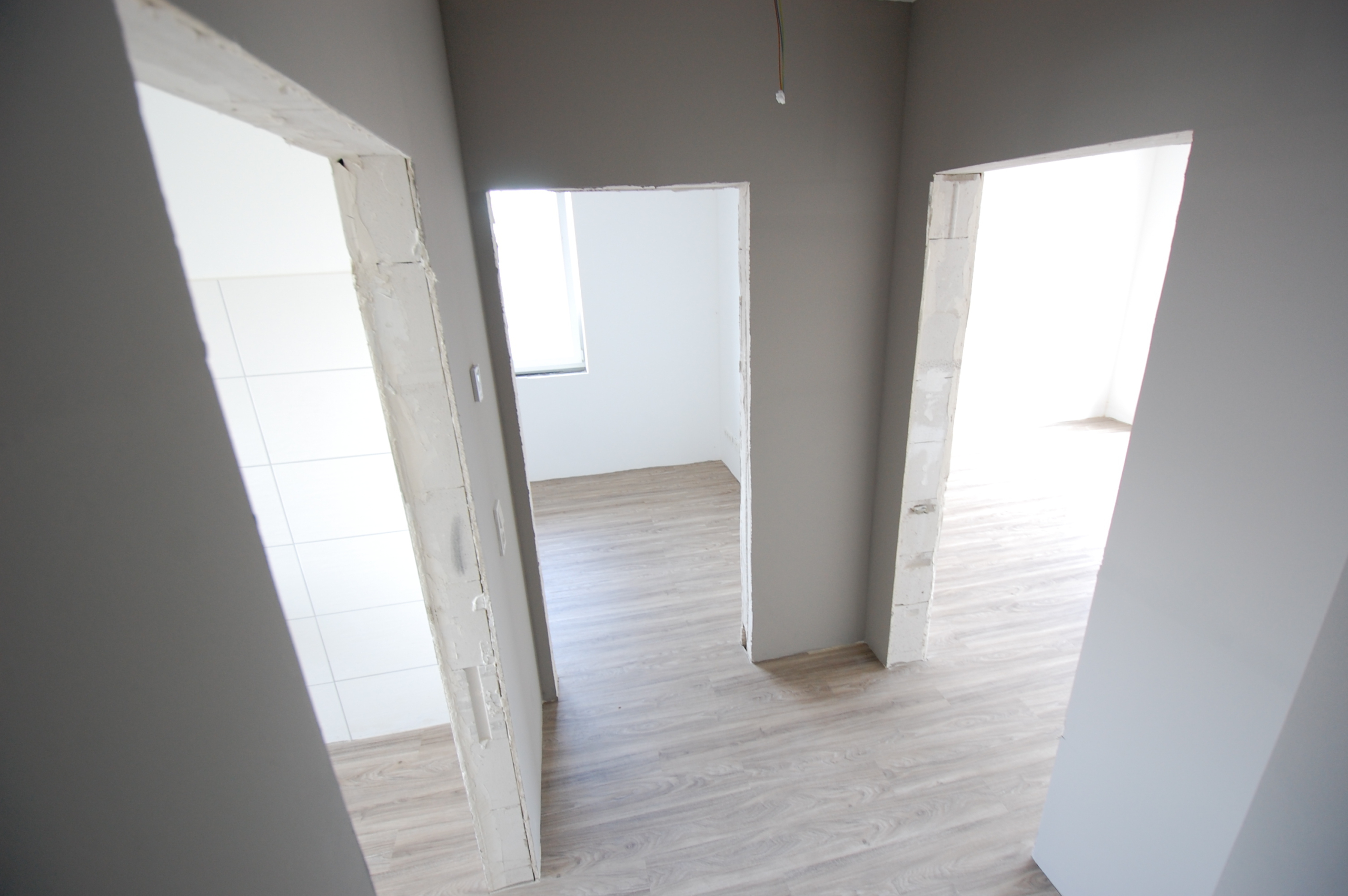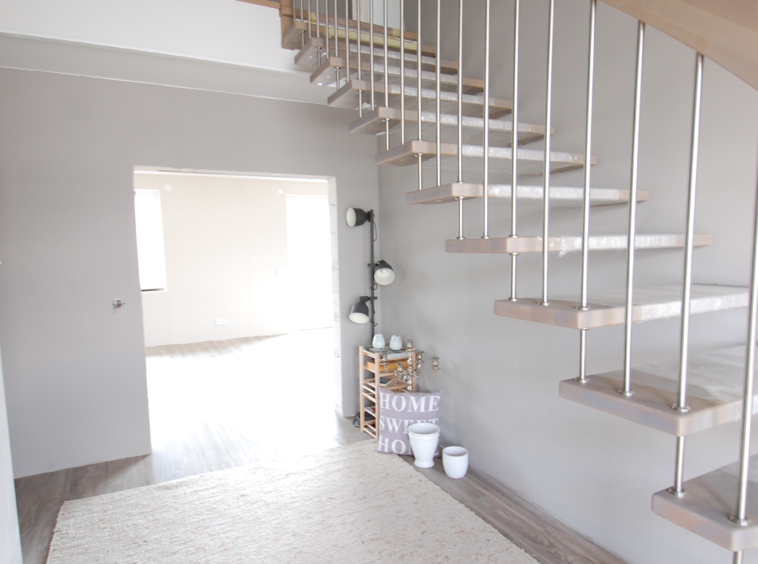 Unser Rundgang durchs Haus: Wir stehen im Eingangsbereich und gehen die Treppe hoch ins Obergeschoss. Der Galerie-Flur führt es uns in 3 große Zimmer. Ein weiteres Zimmer mit der Heizungsanlage, das genügend Platz als Wäschezimmer zu bieten hat und ein großes Vollbad mit einladender Badewanne und stufenloser Dusche befinden sich ebenfalls dort. Das Erdgeschoss besteht aus einer Küche mit großem Ess- und Wohnbereich, welcher Platz für eine Sofalandschaft für die ganze Familie bietet, dem zweiten Vollbad und einem separaten Gäste-WC sowie einer Garderobe und 2 hellen Zimmern.