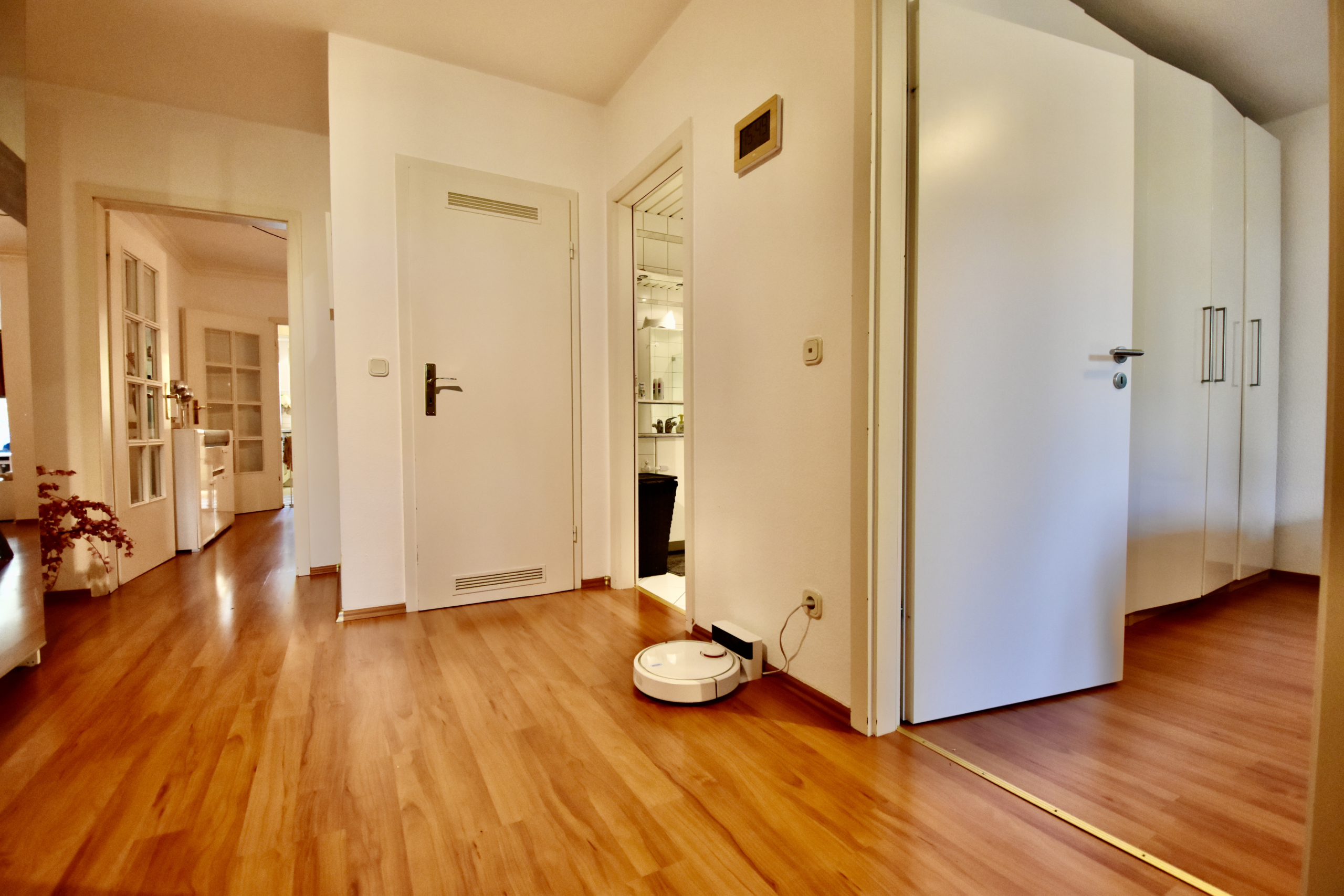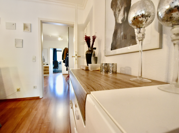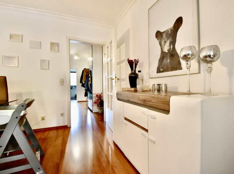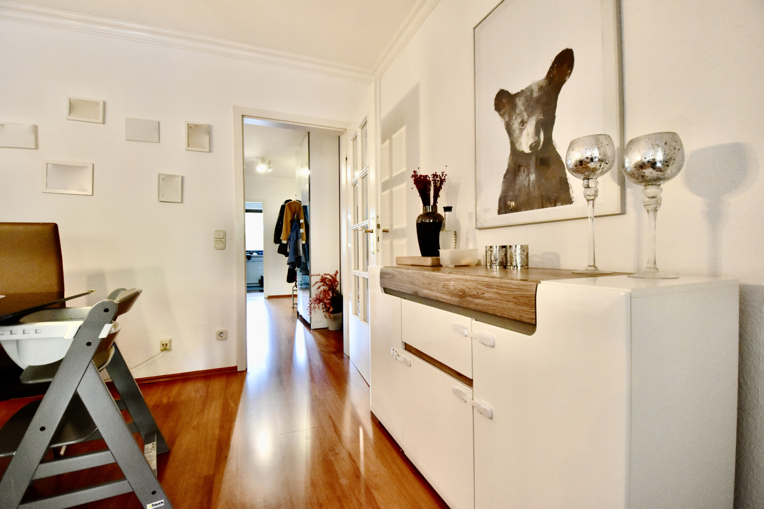 Mit knapp 92 Quadratmetern bietet diese Wohnung ausreichend Platz, um sich mit Ihren Liebsten frei zu entfalten. Über den offnen Flur im Eingangsbereich