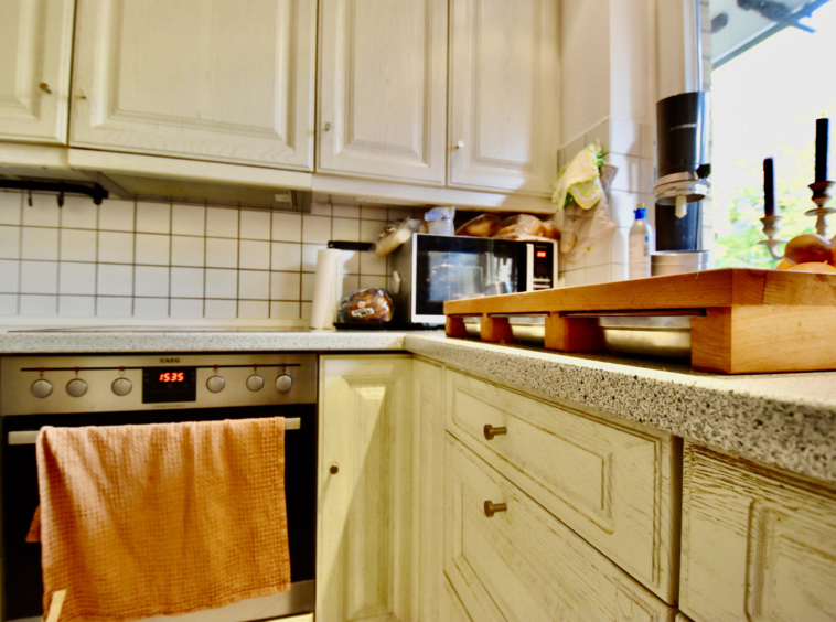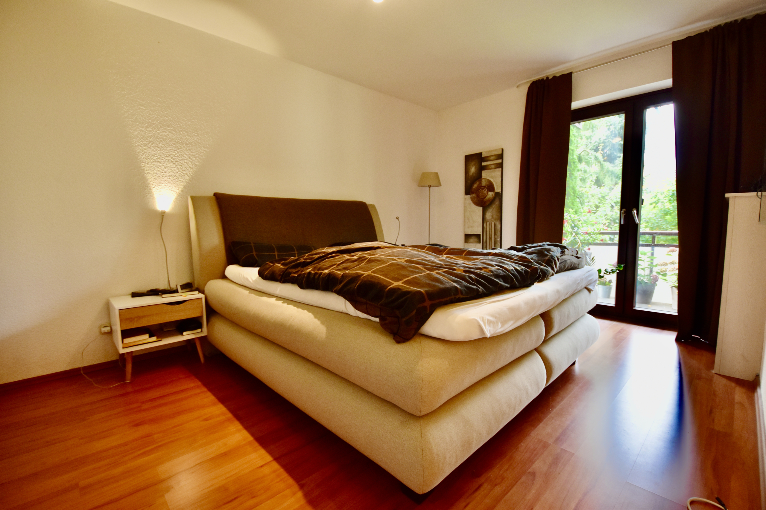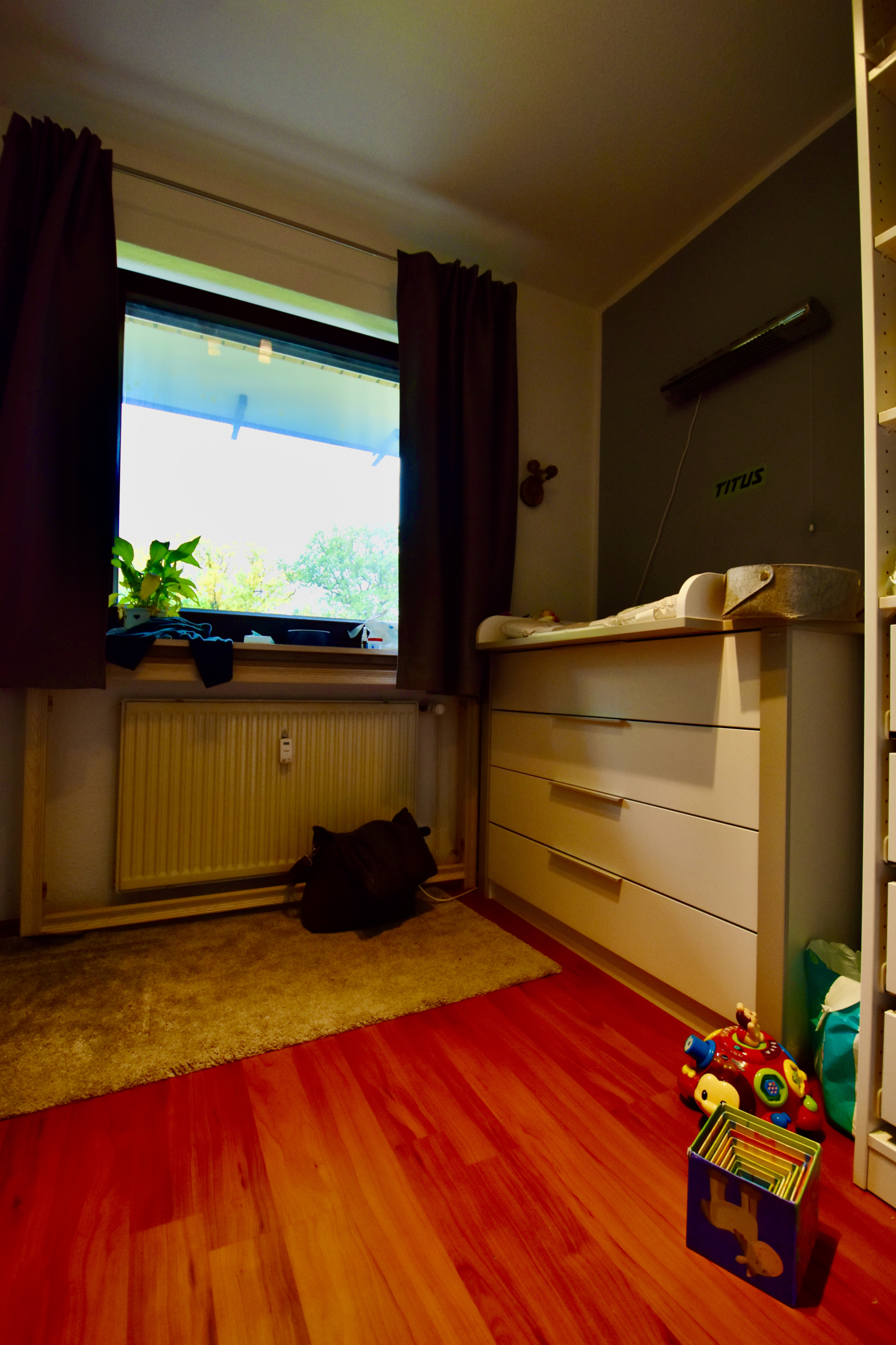 erreichen Sie alle Zimmer. Zur Rechten befindet sich das Kinderzimmer, welches sich jedoch auch ideal als Büro oder begehbarer Kleiderraum einrichten lässt. Nebenan befindet sich das große Schlafzimmer mit direktem Zugang zum großen Balkon in den Hinterhof. Das Badezimmer mit Duschwanne und schönen Badarmaturen bietet außerdem noch Platz für einen geräumigen Schrank. Anliegend im Flur befindet sich der kleine Hauswirtschaftsraum mit Platz für eine Waschmaschine und einen Trockner. Am Ende des Flurs betreten Sie das offen gestaltete Wohnzimmer und die abgetrennte Küche. In diesem wunderschönen Raum haben Sie Platz für eine tolle Couchlandschaft sowie einem Esstisch und einer Leseecke, Kommoden oder was auch immer Ihrem Inneneinrichtungsstil auf dem Herzen liegt. Hier befindet sich außerdem der Austritt zum zweiten Balkon nach vorne hinaus. Die Küche betreten Sie durch eine separate Tür, anliegend zum Essbereich. Die großzügige Einbauküche verfügt über eine Menge Platz zum Kochen. Die Küche ist mit elektronischen Geräten, wie einem Geschirrspüler und einer Herd-