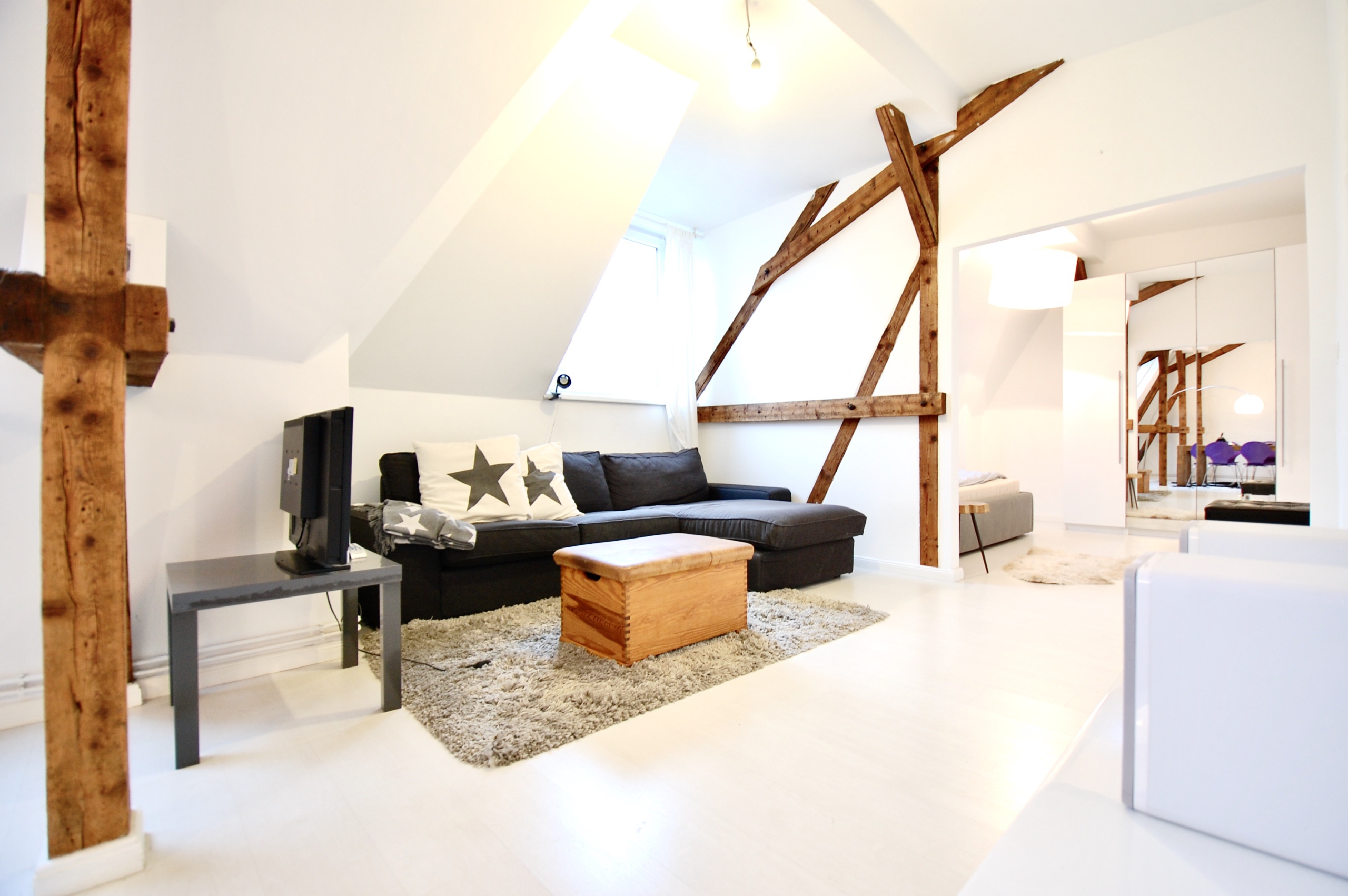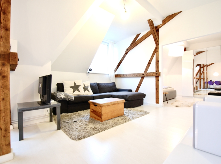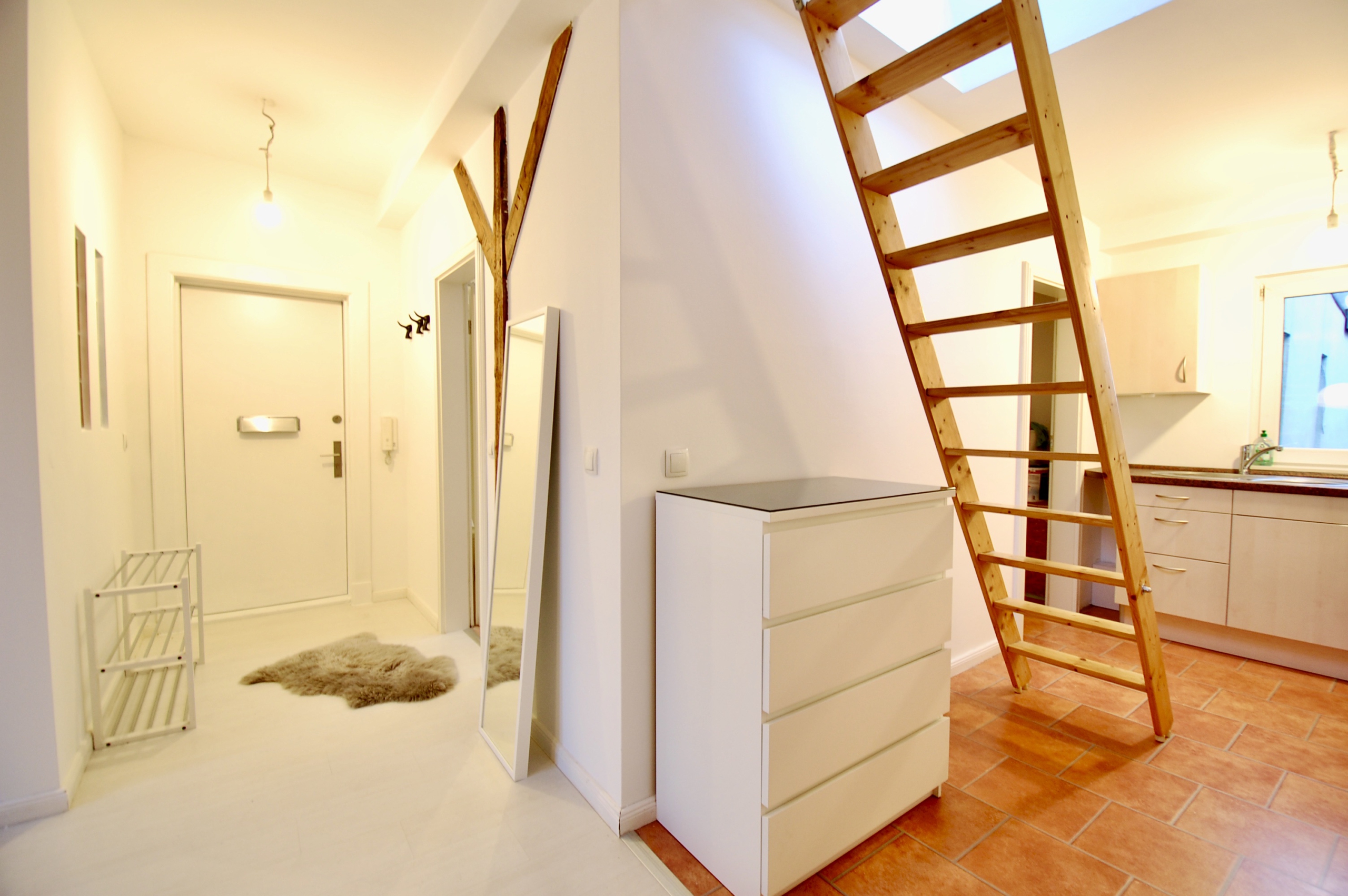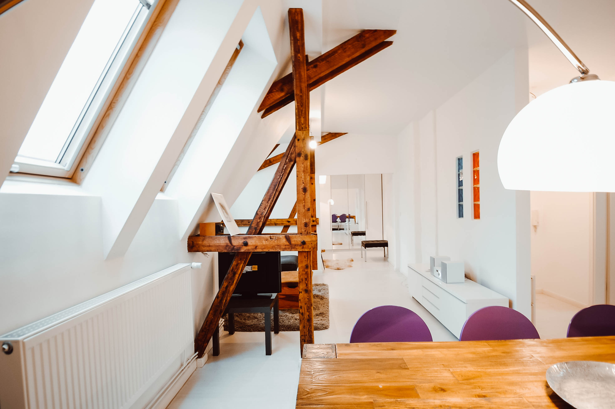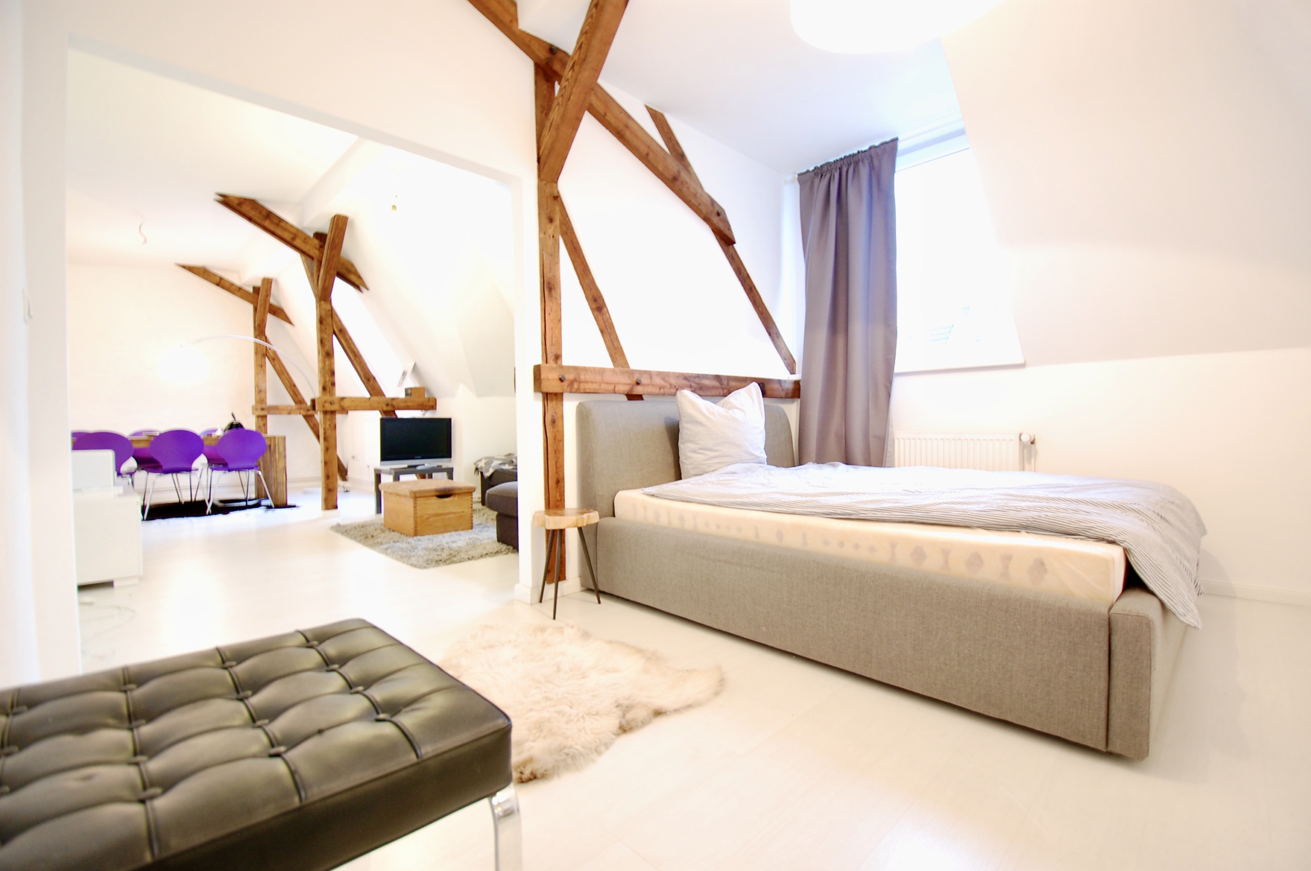Unser Rundgang durch das Loft: Vollbad, Dachterrasse, Laminatboden, Einbauküche, zentrale und ruhige Lage, nette Nachbarn, guter Schnitt! Das Schlafzimmer ist hell: Der offene Schnitt dieses Lofts lässt viel Licht rein. Auch der Wohn-/Essbereich ist schön groß und hell. Von hier gelangen Sie auf Ihre Dachterrasse. Kochen, Arbeiten, Lesen, Feiern, Chillaxen! Der Wohn-/Essbereich ist mit einer großen Kochnische und großen Velux-Fenstern, die diesen Raum mit Licht durchfluten, ausgestattet. Das ist schon fast Heimat-Urlaub! Morgens können Sie sich auf Ihre Dachterrasse setzen, den ersten Kaffee trinken oder gestärkt durch ein Frühstück in den Tag starten. Abends öffnen Sie die großen Fenster im Wohn-/Essbereich und lassen die Sonne auf Ihren wunderschönen Holzboden scheinen. Last but not least: Genießen Sie die kalten Tage auf Ihrem Sofa, in der warmen Badewanne oder auf Ihrer Dachterrasse mit Freunden und Familie.