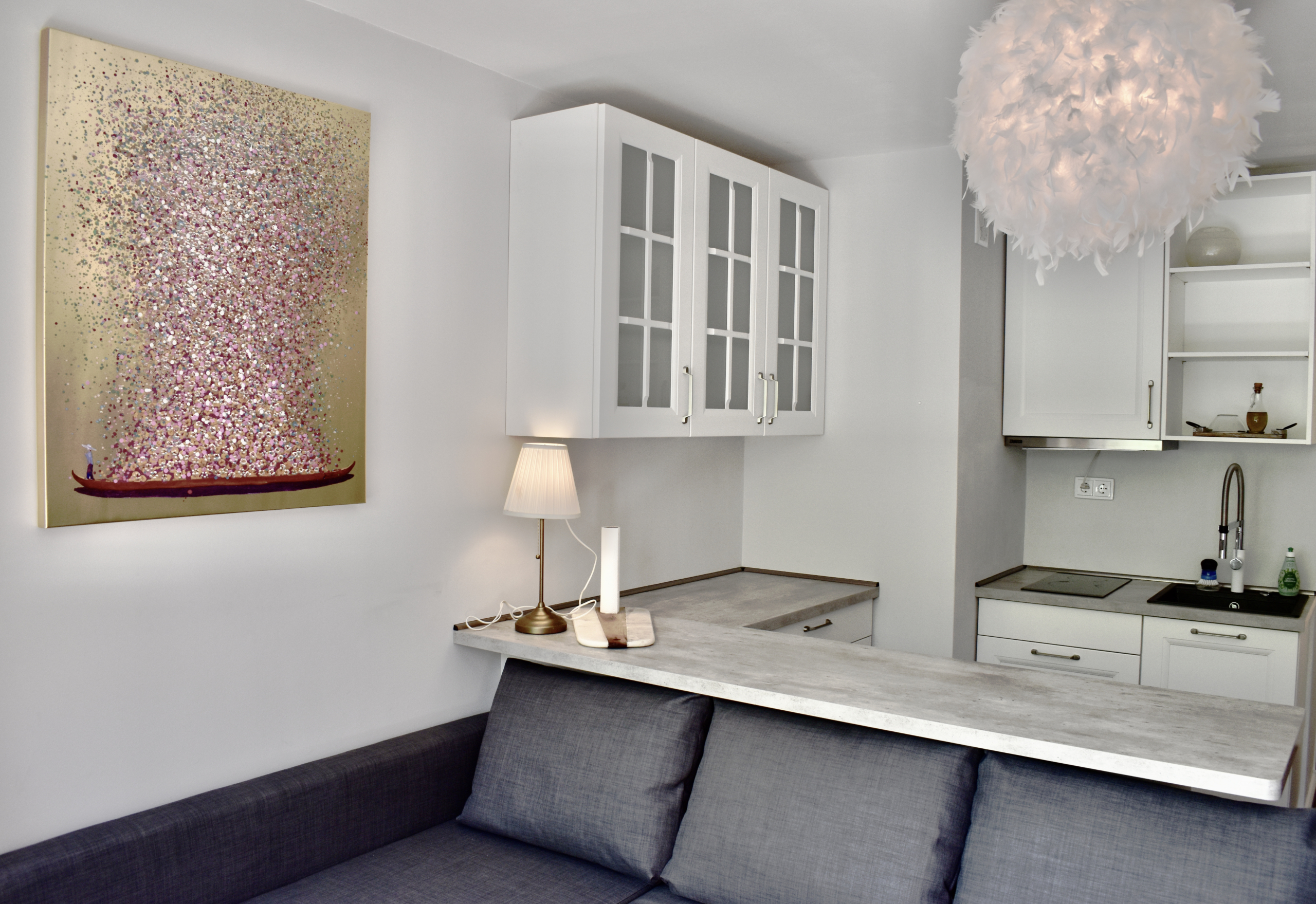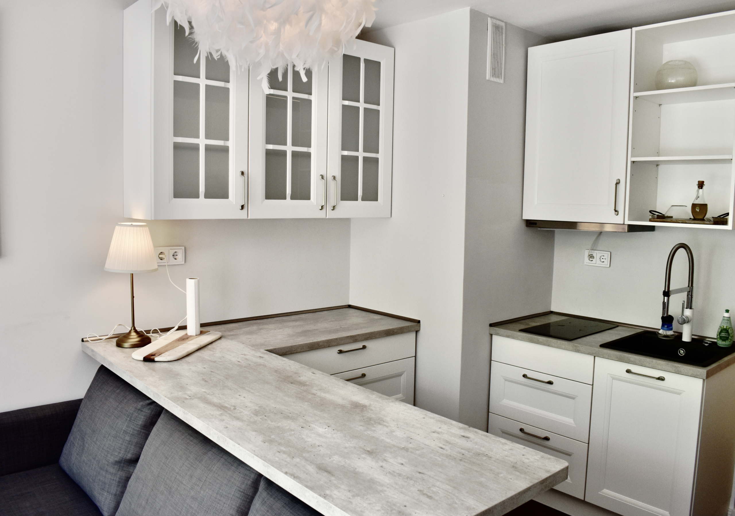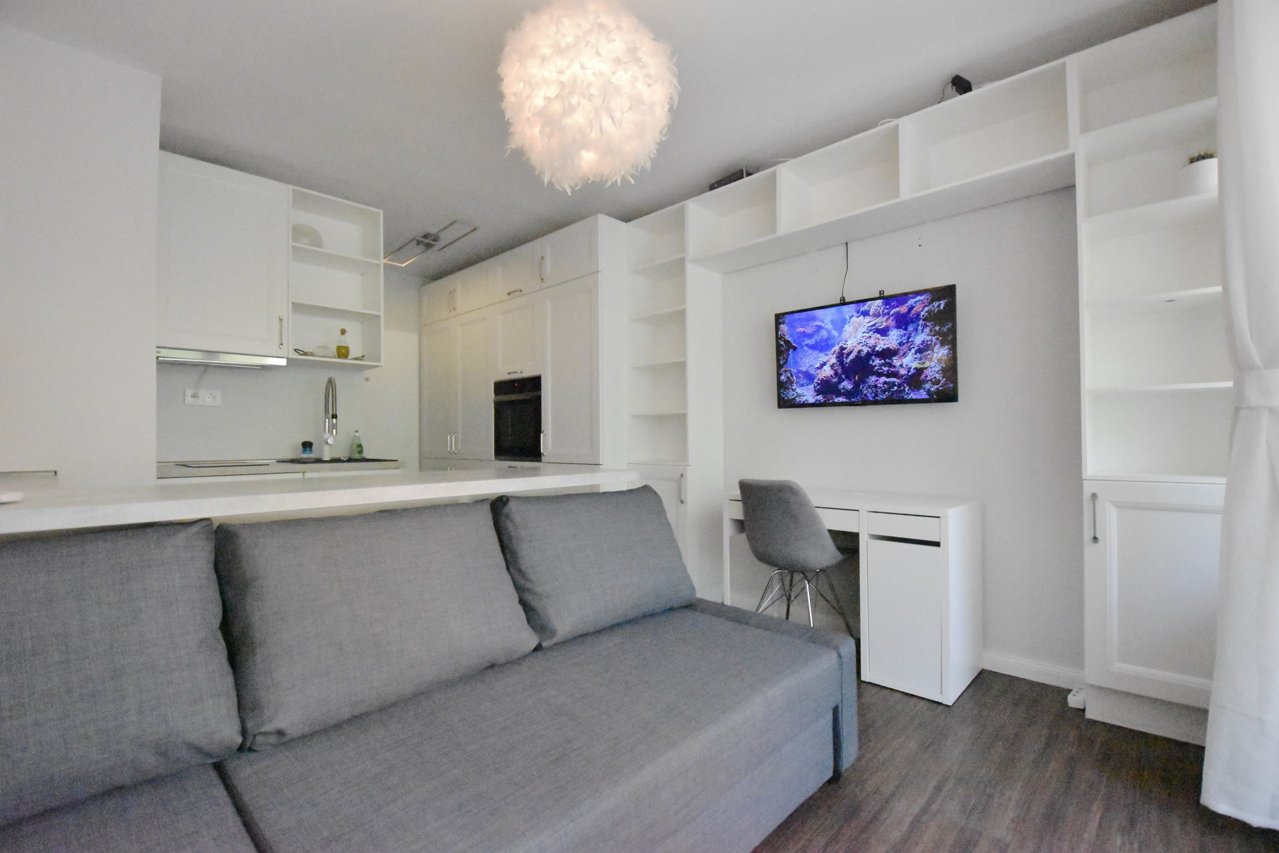 Die Wohnung ist voll Ausgestattet und es fehlt einem an nichts was man braucht, um seinen Alltag in dieser perfekten Gegend zu genießen. Die Küche verfügt über sämtliche Kochutensilien die man zum leckeren Kochen braucht und erleichtert einem den Abschluss des Tages nach einem langen Arbeitstag.