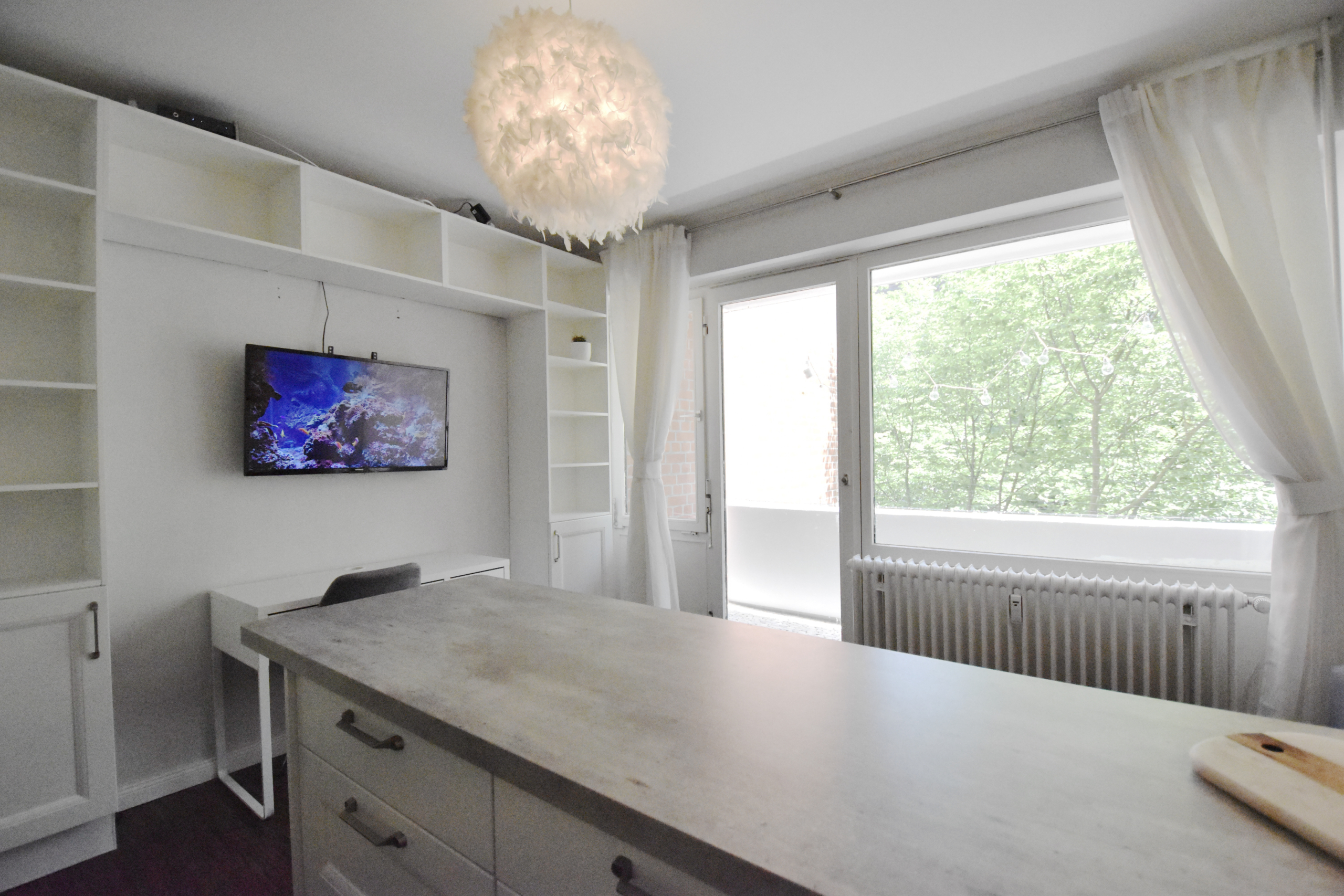 Die Wohnung hat ein großes Fenster, welches auch den Ausstieg zum tollen Balkon bietet. Von hier haben Sie einen Ausblick auf die Natur, welches die Entspannung trotz einer zentralen Lage möglich macht.
