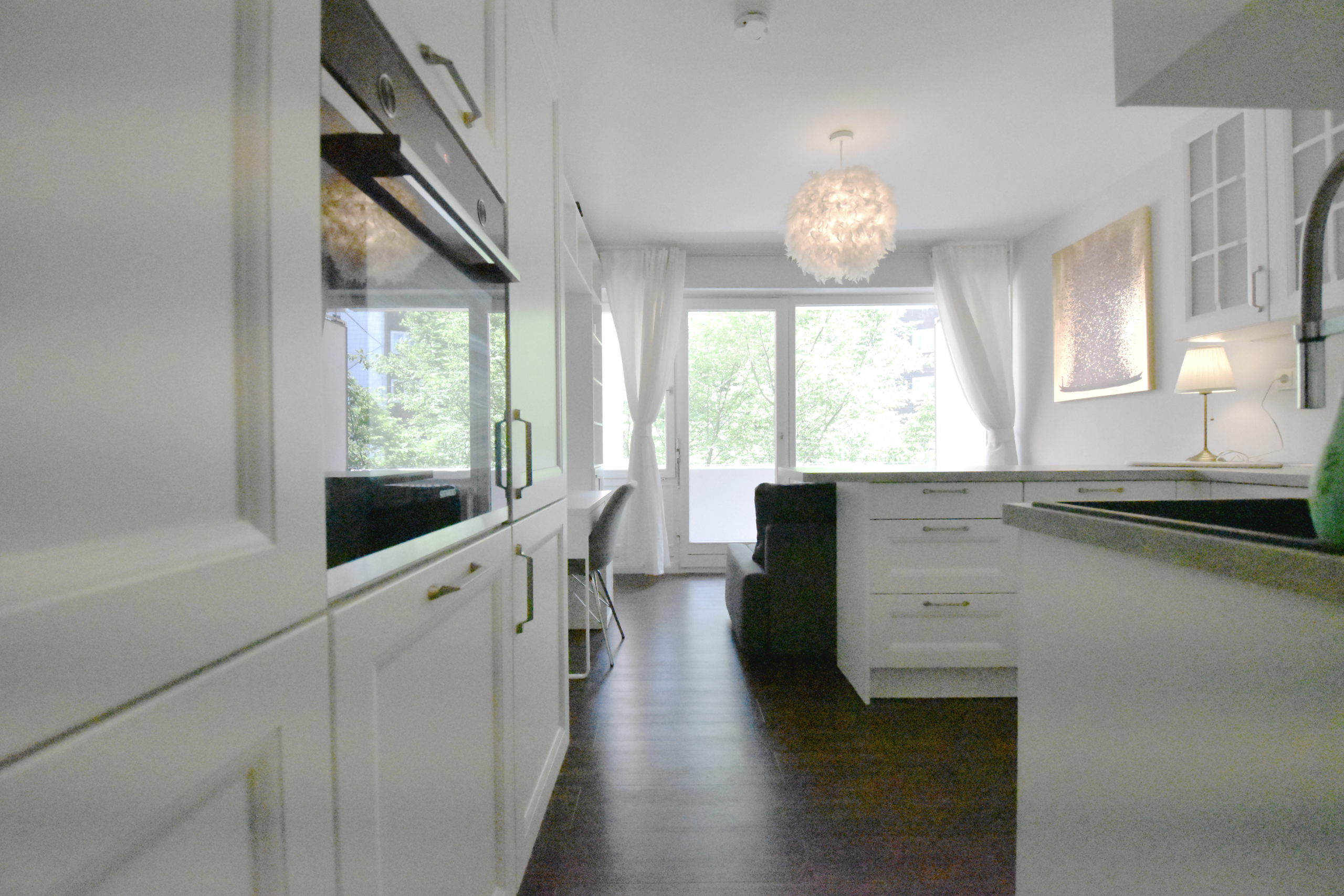 Die Wohnung verfügt über ein Duschbad, eine schöne Einbauküche und einen Balkon mit Ausblick ins Grüne. Sie ist bereits eingerichtet und hat einen guten Internetanschluss. Durch die deckenhohen Einbauschränke verfügt die Wohnung über viel Stauraum.